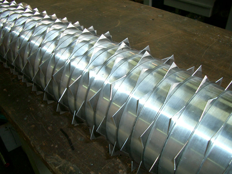 El rodillo de perforación está montado con filas de cuchillas circulares dentadas de acero, que pueden instalarse a una distancia mínima de 5 mm entre sí. Un rodillo de contraste de fibra natural ayuda en el proceso de corte. La Panther100 puede producir hendiduras de hasta 15 mm de longitud. La forma, el número de dientes y su tamaño se fabrican a medida, en función de las necesidades.